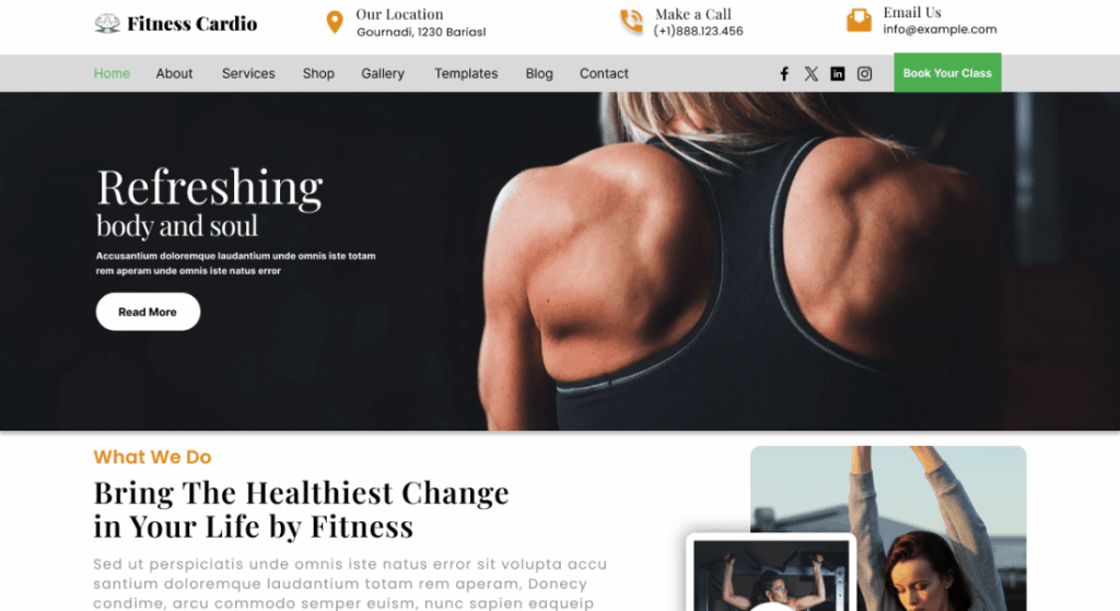 For fitness trainers, gyms, and wellness centers, the Free Fitness WordPress Theme delivers a clean, dynamic design that motivates visitors to take action. It features customizable sections for classes, schedules, trainer profiles, and client testimonials.